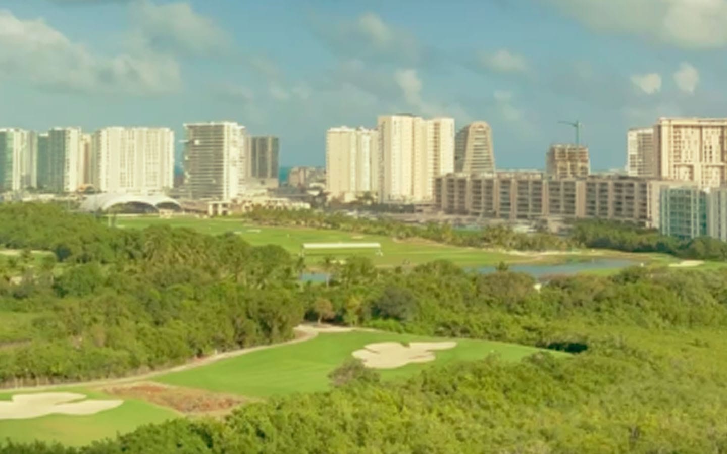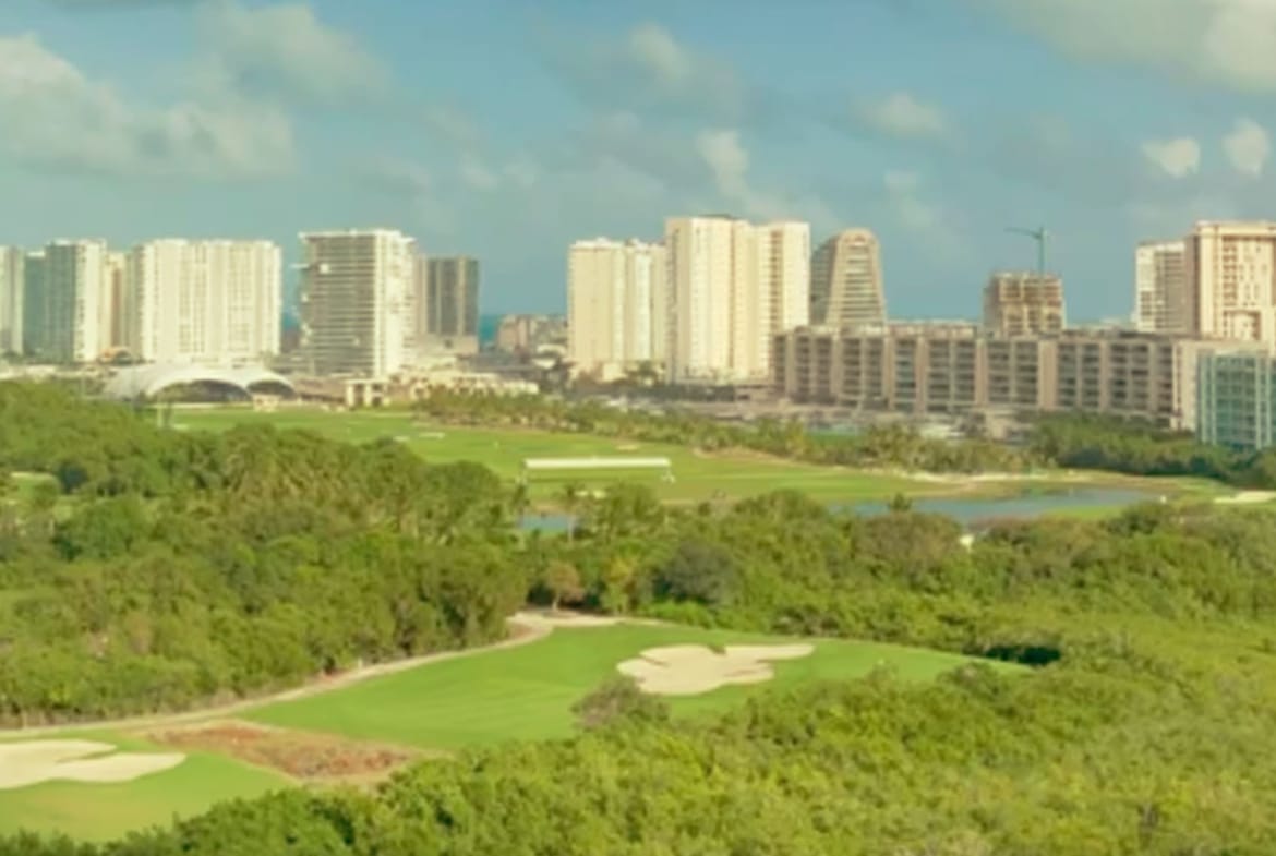 El campo de golf de Puerto Cancún es un sello del área; además de deporte, aporta paisaje y una sensación de “comunidad club”.