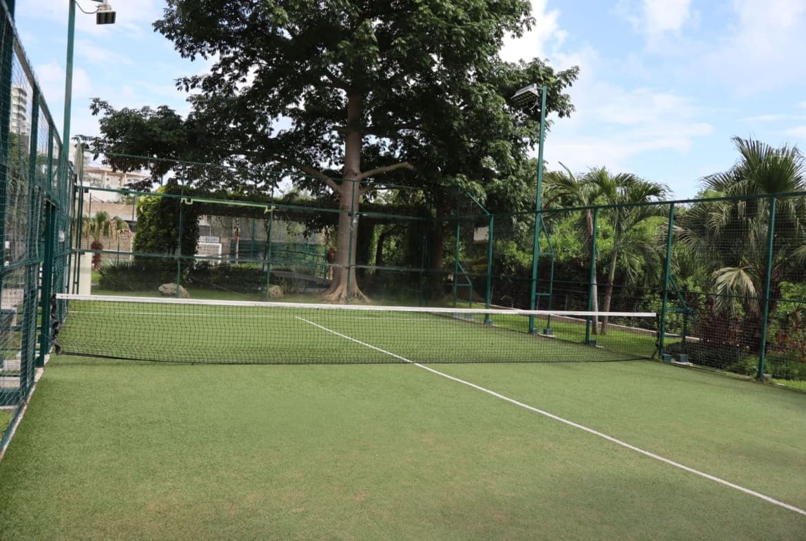 - Cancha (tenis, usos múltiples) y áreas verdes