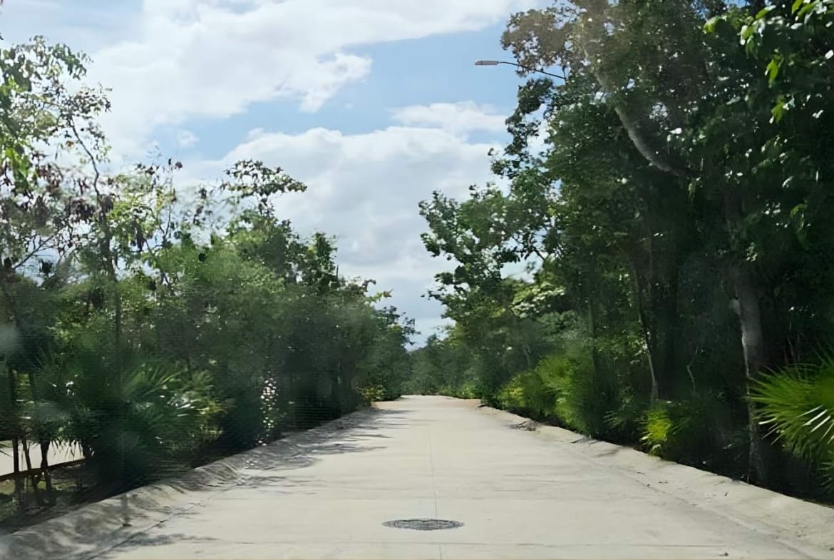 Vivir en Jardines de Ciudad Mayakoba significa estar en un sector con trazado urbano y servicios cercanos, con conectividad ágil hacia las principales vialidades de Playa del Carmen. El acceso controlado y las áreas verdes del fraccionamiento aportan seguridad y calidad de vida. (Portón y vialidades internas).