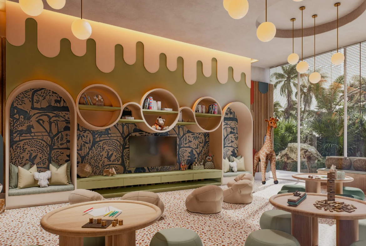 El rooftop infinity, la marina privada, el wellness center de alto desempeño y los restaurantes de especialidad permiten alternar trabajo, bienestar y social sin salir del desarrollo. Para familias, ludoteca y salón de juegos con simuladores; para deportistas, pádel/pickleball, tenis, cycling, crossfit y más. La hospitalidad incluye concierge, mayordomía, valet y servicios a la carta.